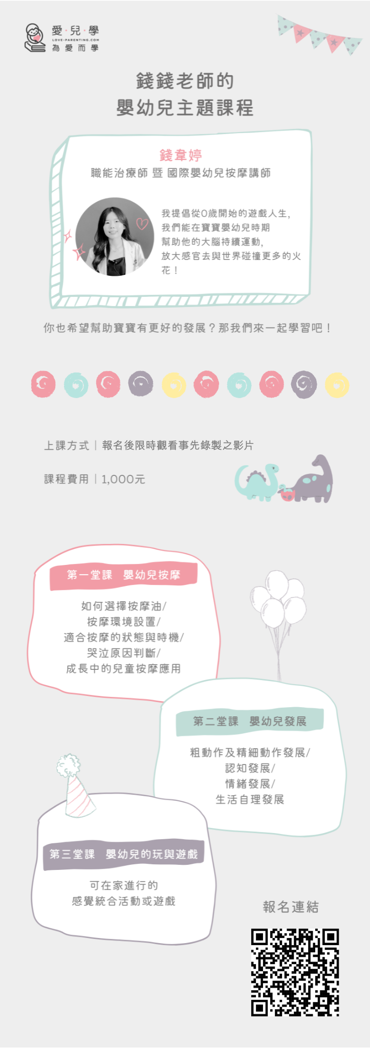 跟著專業又經驗豐富的錢錢老師,一起幫助寶寶從0歲開始遊戲人生吧!